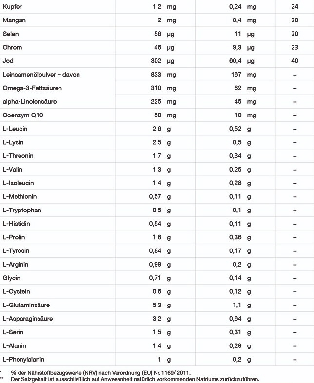 ✔ mit 18 Aminosäuren, Co-Q10 und L-Carnitin