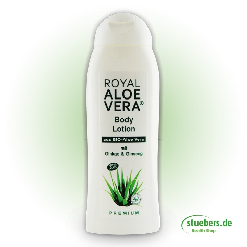 Royal Aloe Vera Body Lotion ist eine Stimulierende Körperlotion mit 60% Bio Aloe Vera, Ginkgo und Ginseng, Vitamin E, Vitamin B3 und Panthenol.